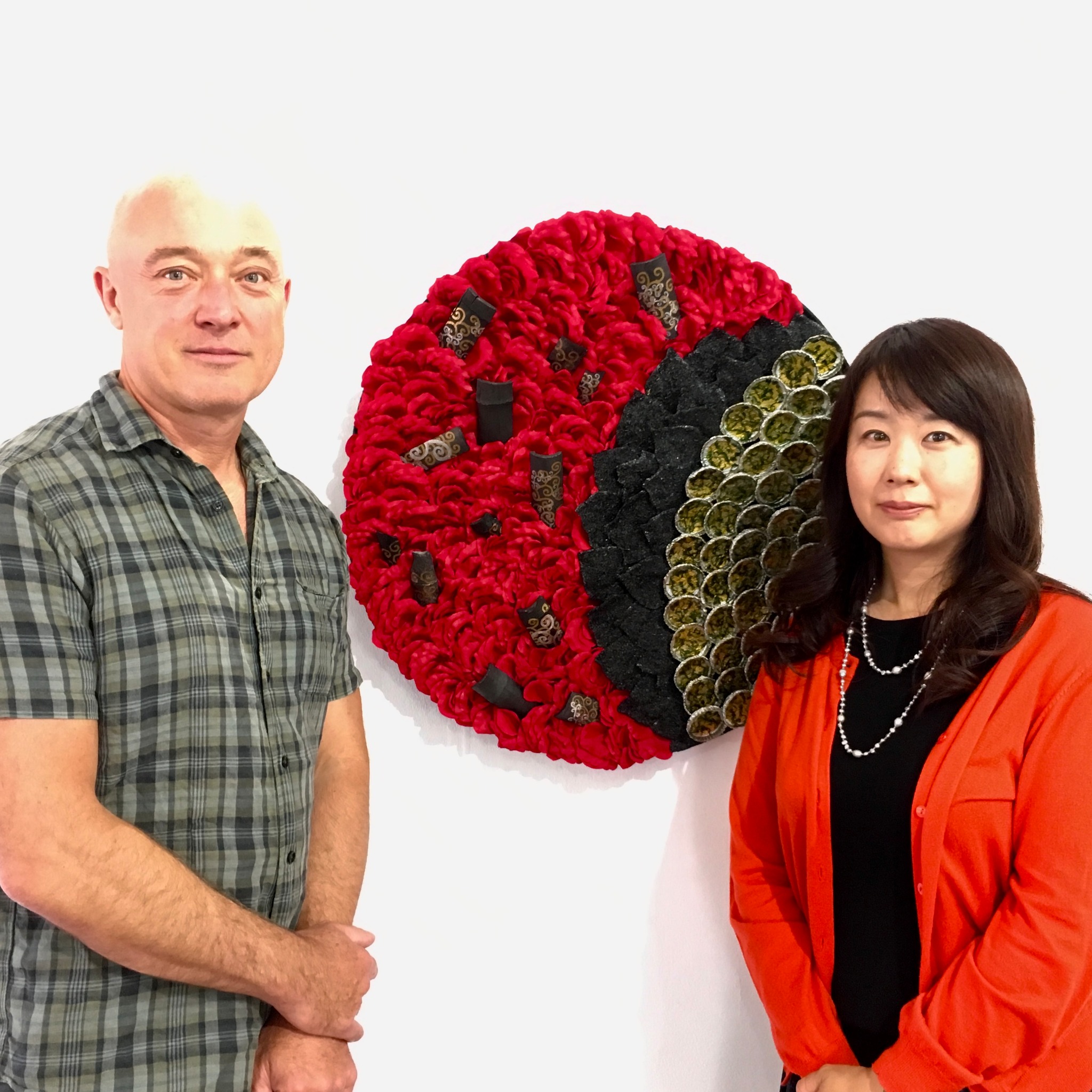 主催会社の方の話しによると、製作の意図を、英国王立美術家協会副会長ミック・デイビス氏、およびキュレーターでアートライターのニコラス・アッシャーウッド氏も、同じ思いで観て下さっていたようです。