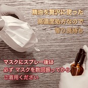 マスクの外側(肌に触れない面)にスプレーし、マスクをよく振ってから着用してください。精油を贅沢に使用し、バランスを考えて配合しているので、マスクを振って空気に触れさせても、1回のスプレーで香りが長持ちします。不織布・布・ウレタン、各種マスクにお使いいただけます。