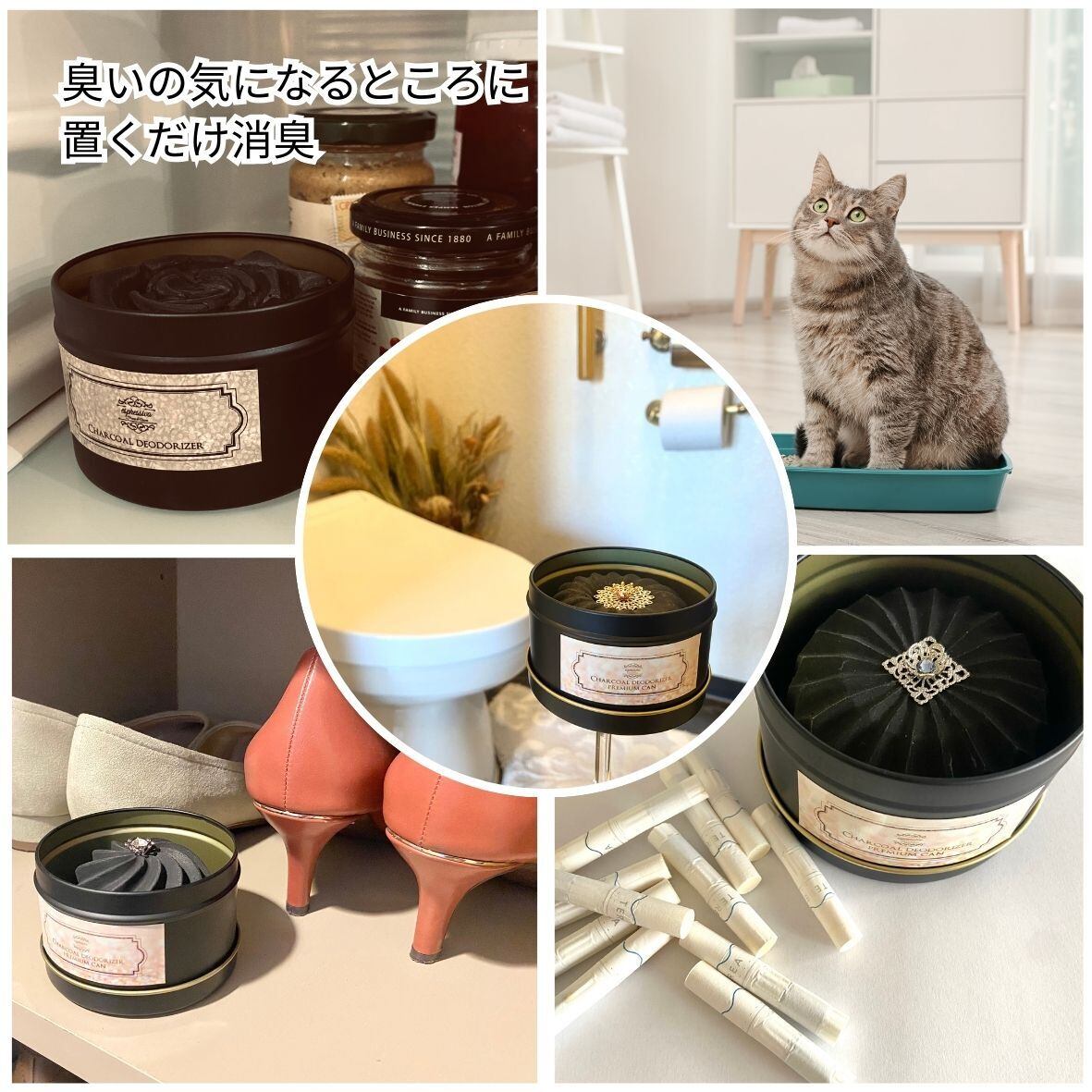 トイレ、玄関、下駄箱、冷蔵庫、タバコ、ペットなど・・・臭いの気になるところで、蓋を開けて置くだけ。