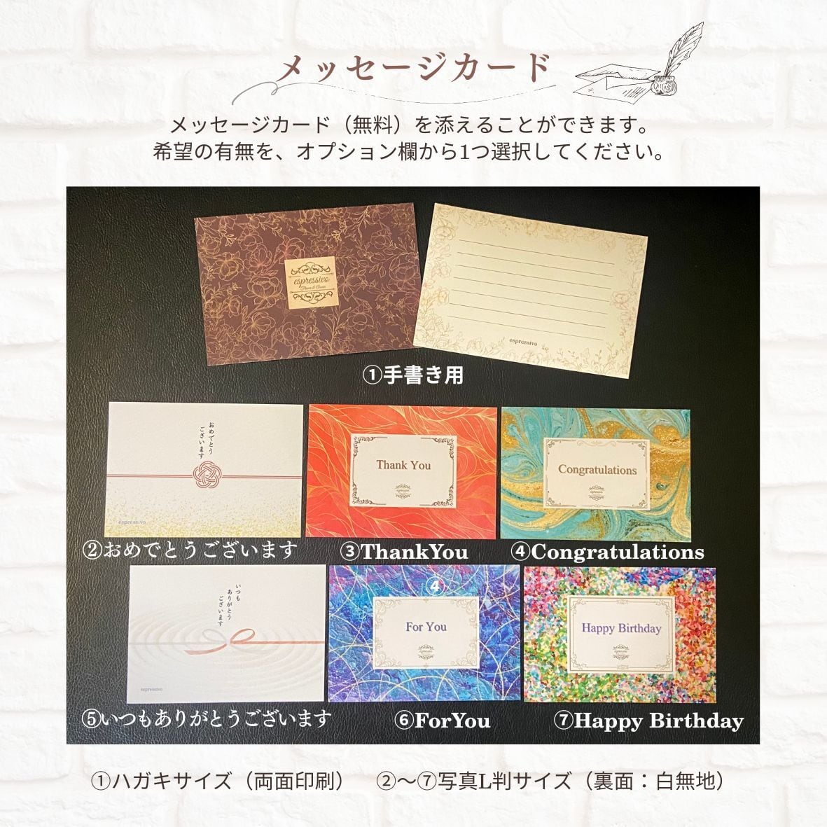 また、通常ギフト包装の場合はメッセージカード(無料)を添えることも可能です。